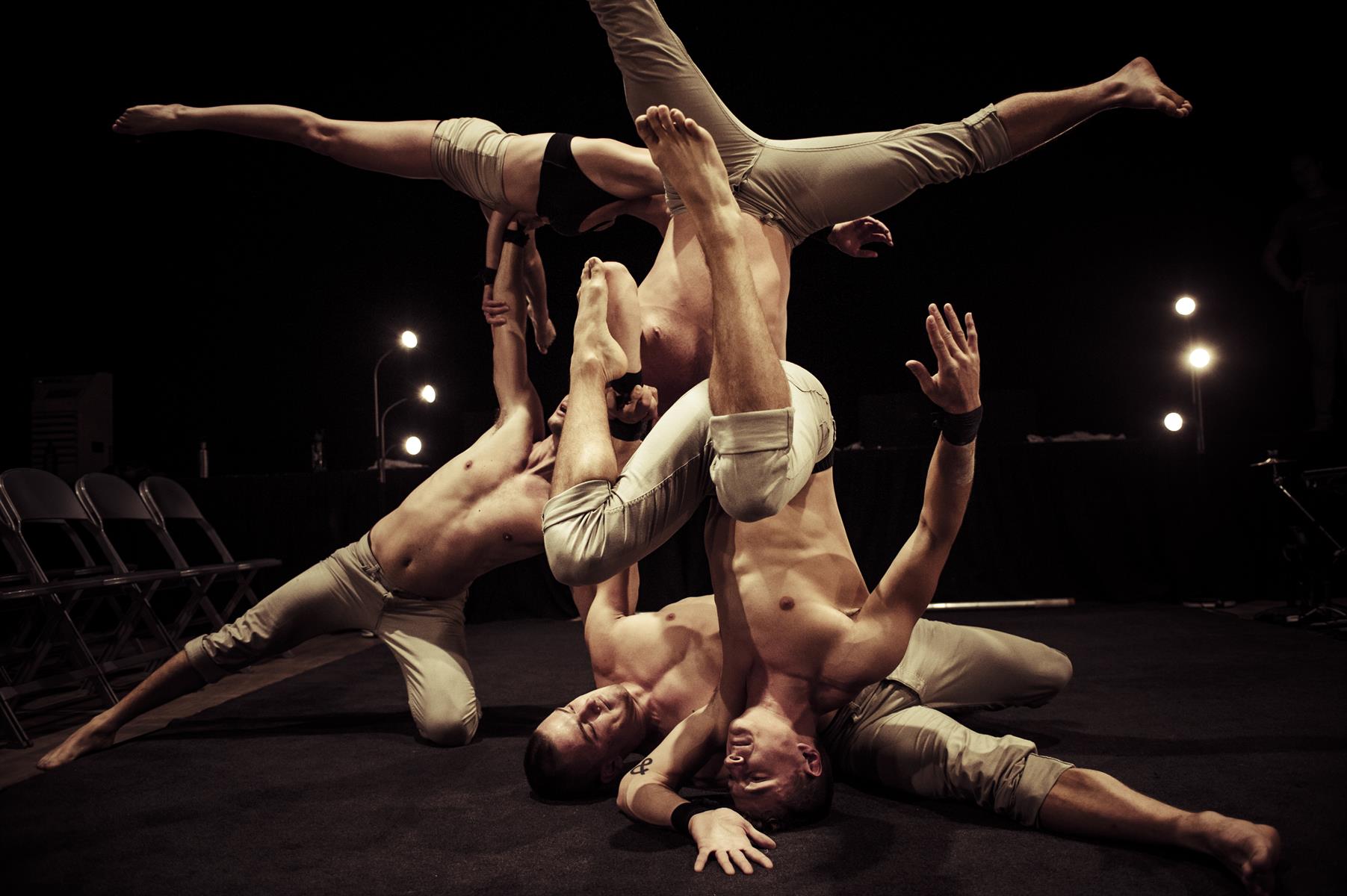 Ce spectacle met en scène 7 acrobates hors-normes et un musicien dans une performance à la fois brute, intense, fragile et ludique. L’intimité est recherchée avec le public, si fortement que l’on peut ressentir la chaleur, entendre chaque respiration, être immergé dans l’effort.