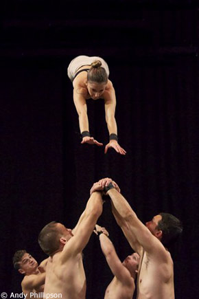 Ici pas de maquillage, pas de décor ou de mise en scène, c’est un échange viscéral qui s’opère entre ces acrobates et le public. Chacun va chercher sa limite physique et prendre le risque de baisser sa garde, de montrer son échec, sa faiblesse du moment.