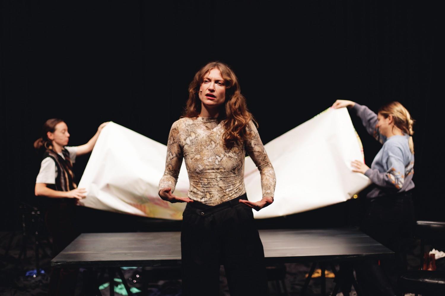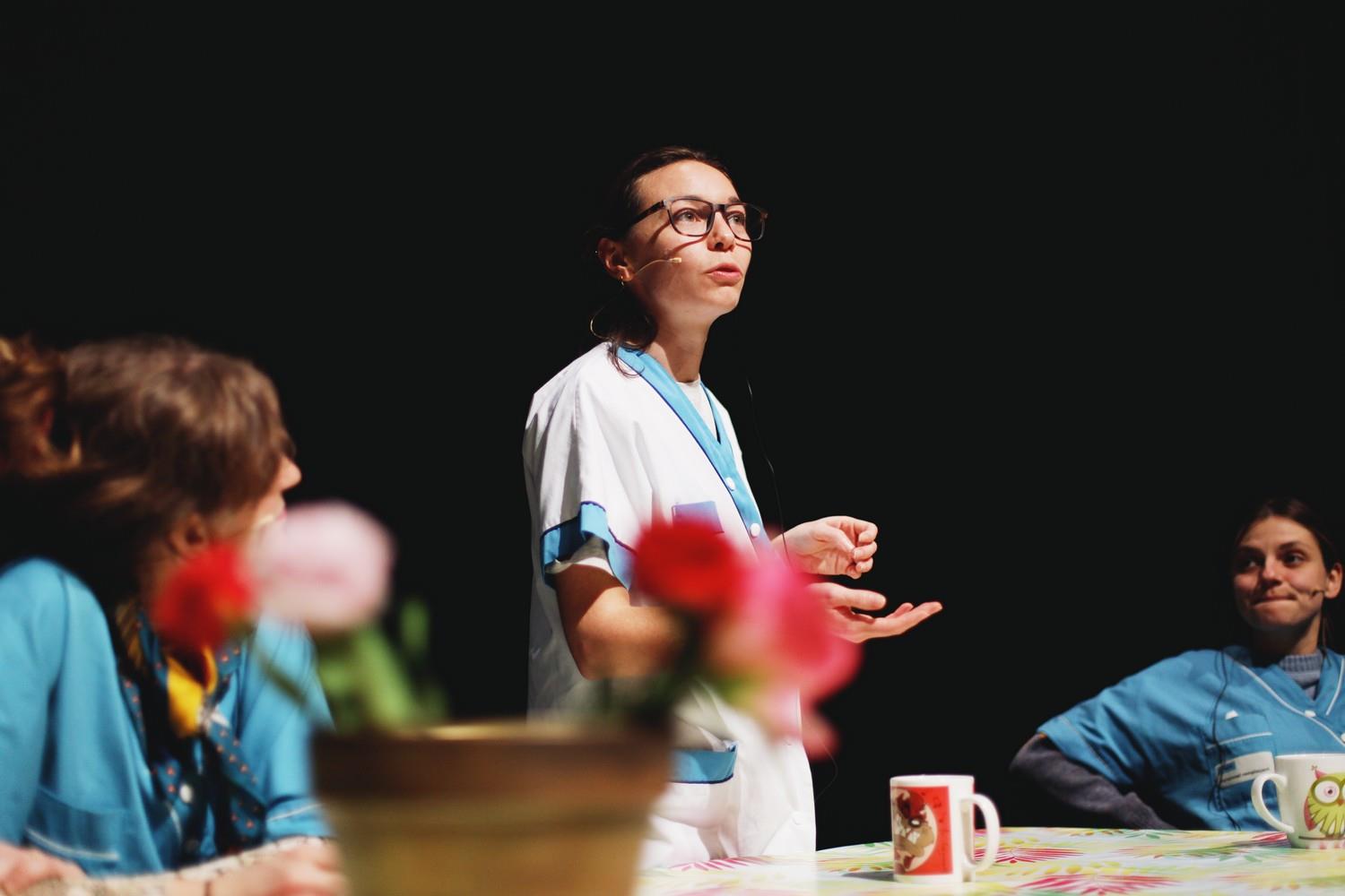 En s’adressant au public sur la question du mensonge, la pièce lève le voile sur l’intimité de ses personnages et sur ce qui d’ordinaire se tait. Avec cette pièce, nous voulons faire circuler et donner vie aux histoires qu’on se raconte, à nos propres mythes, à nos fantasmes, en les regardant en face, en les incarnant. Théâtraliser nos mensonges pour les dédramatiser et les déculpabiliser. Le mensonge devient alors outil identitaire : s’inventer soi-même, devenir quelqu’un.e d’autre. Il est une sortie de secours, une bouée de sauvetage face aux catégorisations et aux assignations restrictives.