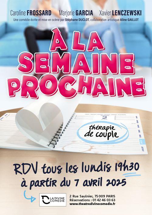 Une comédie brillante, rythmée et pleine de rebondissements qui parle à chacun avec humour et justesse. Caroline Frossard est exceptionnelle dans le rôle de la thérapeute, à la fois drôle, touchante et irrésistible. On rit beaucoup, on se reconnaît souvent, et on en redemande. Un vrai coup de cœur !