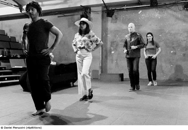 Rapidement la construction de nouveaux espaces se fera par la présence de quelques éléments de décor ou accessoires et par la circulation des acteurs. Le mot d'ordre sera toujours d'essayer, d'oser, de tenter, même si cela parait énorme ou à côté car l'expérience du plateau donne toujours de nouvelles clés, dont nous n'avont pas nécésairement tout de suite conscience mais qui ouvrent pour d'autres moments dans la pièce de nouvelles perspectives d'exploration. L'échec n'existe pas dans le temps des répétitions, l'échec ou la réussite ne nous concerne pas.