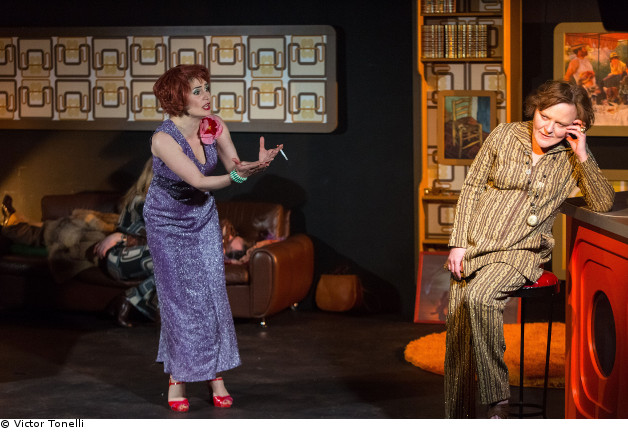 Mike Leigh le grand cinéaste aux Palmes d’Or et autres Oscars est aussi un auteur de théâtre plus méconnu en France. Abigail’s Party, ici traduite par le brillant Gérald Sibleyras a été créé en 1977 et la pièce a toute la folie de ces années-là, la liberté, ce mélange très anglais de la farce liée à la tragédie, un plaisir pour les cinq comédiens qui s’emparent avec bonheur de ce challenge.