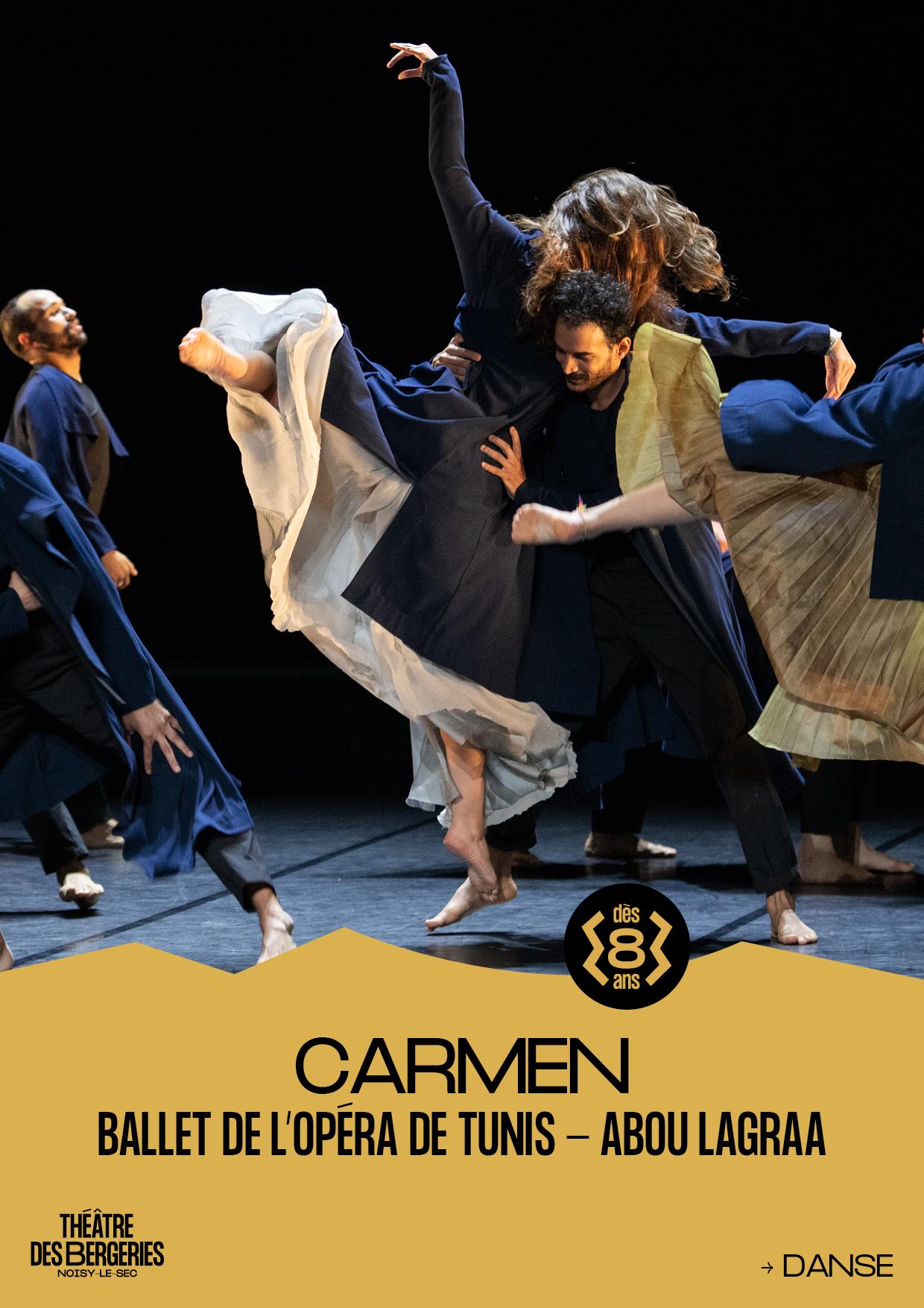 Cette pièce produite par le Théâtre de l'Opéra de Tunis est une version dansée flamboyante de Carmen, revisitée par le chorégraphe Abou Lagraa pour treize danseurs. À partir de 5 ans
