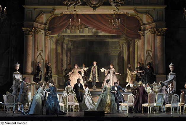 À l’Opéra Bastille, la mise en scène de David Mc Vicar, raffinée comme un tableau de Watteau, ressuscite un XVIIIe siècle bouillonnant où les passions de la vie sur scène font échos aux passions de la vie réelle.