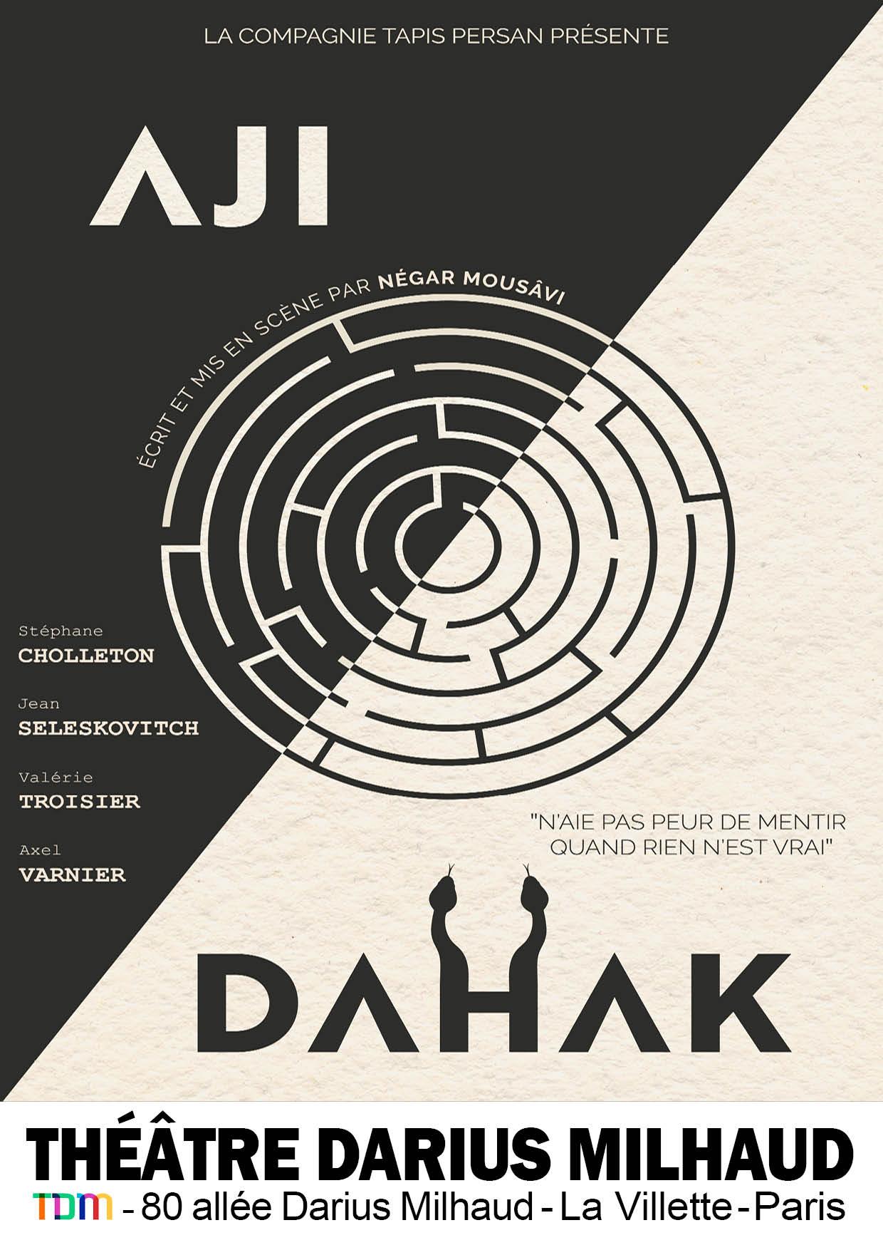 Dans la mythologie perse, Aji Dahâk naît d’Ahriman, incarnation du mal. Fils de Mardâs, roi juste et bienveillant, il est trompé par Ahriman et finit par tuer son propre père — un acte qui ouvre la voie à une ère de crimes et de destructions, sous son règne de terreur.