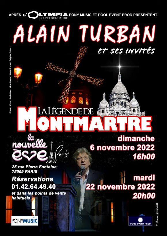 Aujourd’hui, c’est un nouveau concept et une nouvelle équipe qui vous fait partager cette version revisitée de La Légende de Montmartre. Au cours de cette soirée haute en couleurs, acteurs et chanteurs feront revivre autour d'Alain Turban les belles années de cette grande histoire, que les étrangers nous envient, celle de la commune libre de Montmartre.