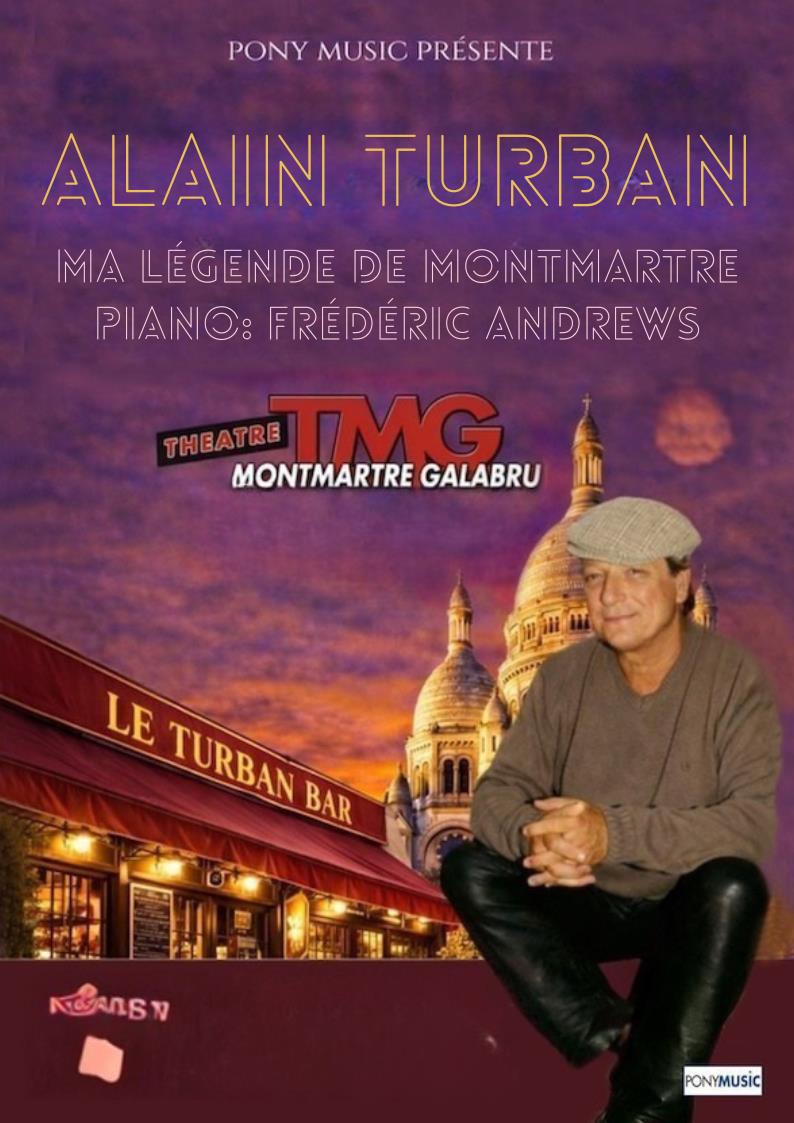 Quant au Turban bar, il n’est pas très loin, tout comme les gosses à Poulbot, du quartier qui dévalent les rampes des escaliers. Alain vous le chante et se souvient de tout. Il en a fait sa Légende en passant par l’Olympia en 2013 dans un spectacle proche de la comédie musicale. Il aspire aujourd’hui à vous faire redécouvrir cette légende incontournable dans une version plus édulcorée, et sera accompagné au piano par Frédéric Andrews où les silences cèderont la place aux chansons éternelles juste le temps de remonter la rue Lepic pour découvrir le théâtre Montmartre Galabru.