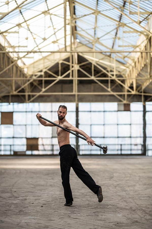 Alexander Vantournhout s’empare de cet objet et se confronte ainsi aux clichés de l’imagerie masculine associée à l’exaltation de la force et à la célébration de la violence. Maniant divers accessoires, il met à l’épreuve leur portée symbolique, non sans humour, via un ensemble de mouvements et de postures dont la qualité sculpturale n’a d’égale que la subtilité critique.
