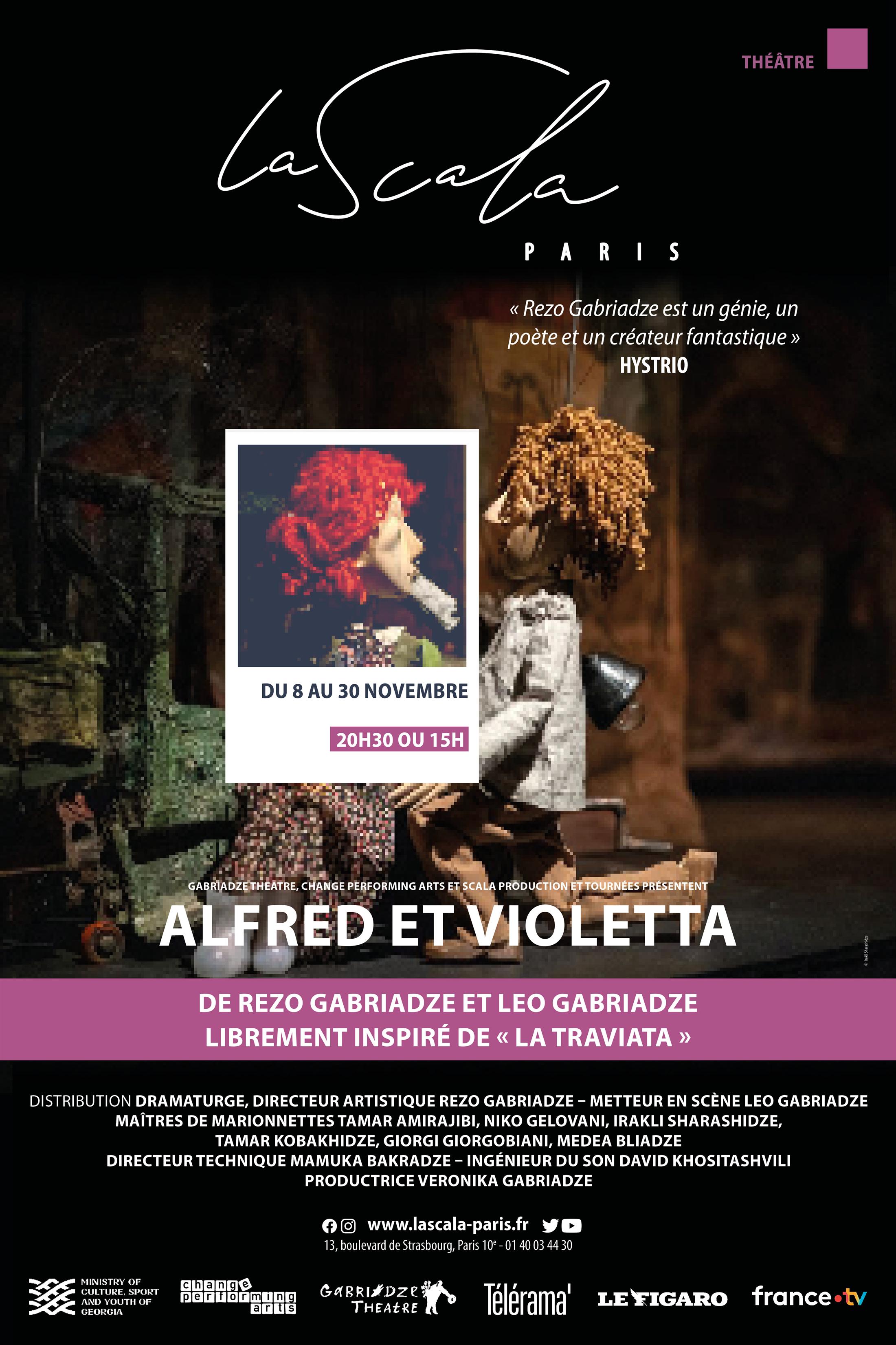 « Le théâtre de marionnettes créé par Rezo Gabriadze, repris par son fils Leo, enchante Paris avec cet Alfred et Violetta très librement inspiré de la Traviata. De quoi illuminer nos mirettes. » Les Echos