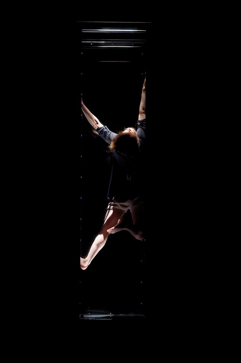 Puits ? Prison ? Matrice ? Au commencement, il y a cette longue boîte de plexiglas, cet étroit conduit qui l’enserre et l’enferme. Pas moyen de bouger, pas d’espoir de filer. Puis, à force de tâtonner, tâter, tenter, se tordre, se tendre, le corps invente le mouvement. Et le mouvement invente l’issue. La voilà dehors. C’est un jaillissement, une évasion, une naissance. Une libération ? Voire. Car le pli est pris. L’entrave reste au cœur, au corps. Dans l’espace ouvert du plateau, il faut encore batailler pour faire tomber les murs invisibles, briser les chaînes intérieures, trouver sa forme et sa place. Le solo de la contorsionniste brésilienne Alice Rende nous conduit d’un dedans à un dehors – et retour. Au cœur de ce voyage, une question lancinante : comment larguer les amarres, et faire route vers soi ?