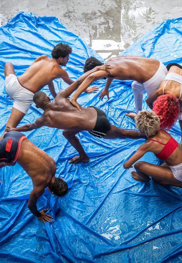 Au plateau, les six danseurs explorent toute la polysémie des gestes familiers du nettoyage, jouant avec les mains, les corps et les surfaces. Transformés en matériau chorégraphique, ces gestes racontent une histoire de la société brésilienne, où la réalité et l’imaginaire s’entremêlent dans un délire aux allures de rêve apocalyptique.