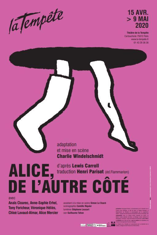 Dans cette adaptation, « l’autre côté » n’est que l’envers de la représentation, au cœur de laquelle Alice peux voir, et se voir, si tant est qu’elle accepte de perdre sa place. C’est donc de ce voyage insensé qu’il s’agira : dé-placer pour re-placer et peut-être, enfin, attraper quelque chose, entendre une musique, une idée ou un rire... En passant de l’autre côté, Alice la récalcitrante fait 7 rencontres fantastiques. Dans ce qui semble être le souvenir d’un Ehpad, ces vieilles figures ambivalentes coiffées de cagoules de latex poussent férocement Alice hors des pièges du langage pour y inventer sa propre parole... À l’image de cette moderne héroïne, les spectateurs plongent, en une lente traversée, au cœur d’une arène délirante où, si l’on se cogne, c’est toujours à soi-même.