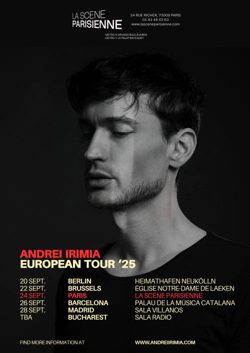 Suite au succès de son concert à guichets fermés à La Scène Parisienne, l'année dernière, Andrei Irimia ramène son envoûtant concert Lights & Shadows à Paris. Connu pour son style néoclassique contemporain, Andrei mêle des compositions de piano complexes à des textures électroniques innovantes et de riches arrangements de cordes pour créer une expérience véritablement captivante. Sa musique tisse des mélodies hypnotiques et mélancoliques en des paysages sonores enchanteurs, offrant un voyage profondément émouvant qui explore les couches délicates de l'émotion humaine.