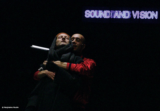 Nous travaillerons la dimension de l’apparition, nous questionnerons son « entrée », les bascules entre les mondes à l’aide de l’outil vidéo mais aussi du dispositif de diffusion du son qui entourera le spectateur, le surprenant parfois à jardin, parfois à cour, créant les allers-retours entre les mondes.