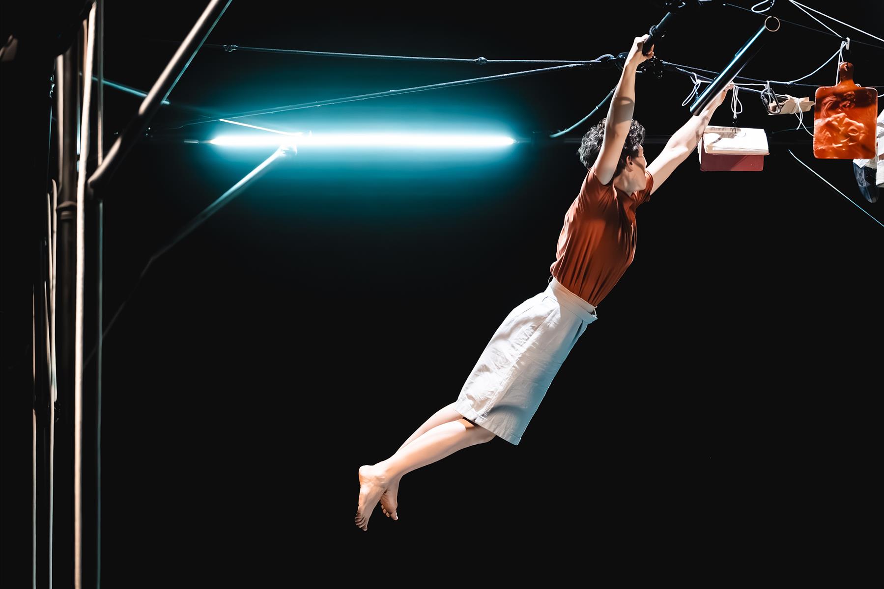 Intime ou collective, aucune cathédrale n’est éternelle. Telle est la règle. Alors il faut rebâtir. Trouver, à partir du même matériau, de nouvelles architectures. Re-tricoter, tracer de nouvelles perspectives, redéfinir l’espace habitable. Renouer, ensemble, le fil de l’espoir. Tisser ; défaire ; tisser encore. Tisser autrement. C’est autour de ce mouvement sans fin – celui de la vie-même – que la circassienne Inbal Ben Haim construit son spectacle. À l’impermanence des choses (anitya, en sanscrit), elle oppose notre increvable pouvoir de création et de recréation.