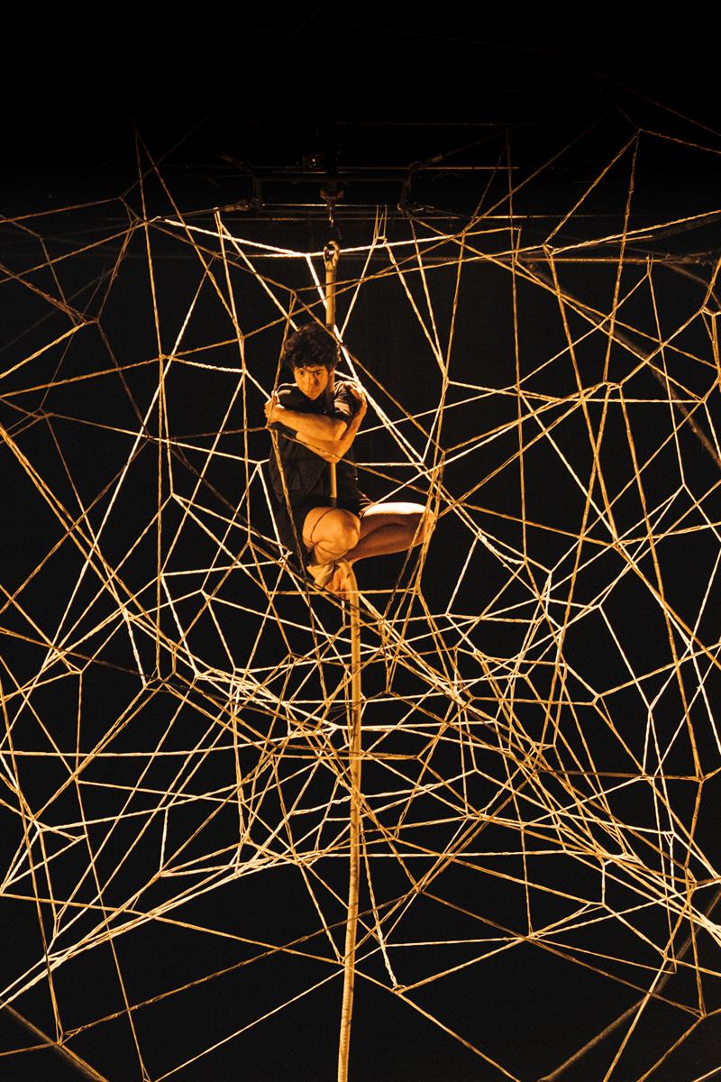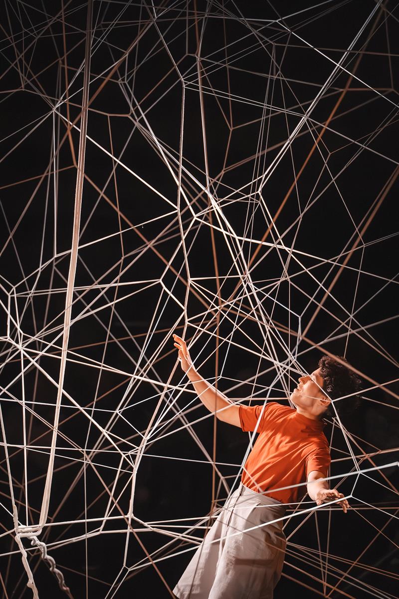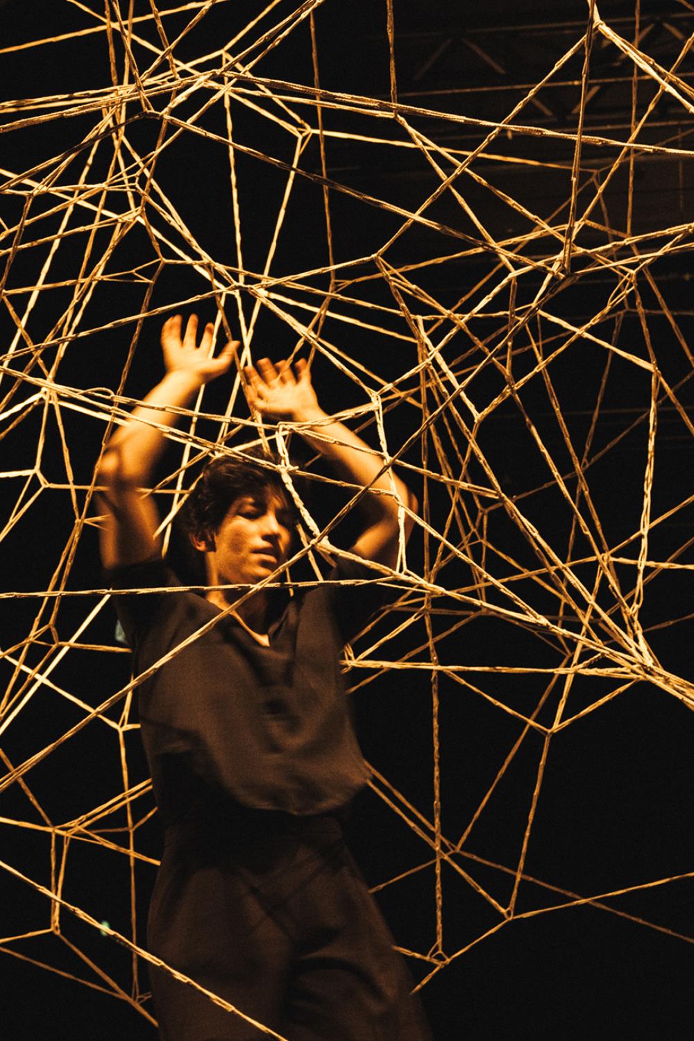 De la gigantesque trame qui occupe le plateau et zèbre l’espace, il ne restera bientôt plus rien. Avec le temps, va, tout s’en va, tout s’effiloche. Les lignes qu’on croyait nettes s’évanouissent. Les cordages qu’on pensait solides cèdent à la moindre pression. À partir de 10 ans