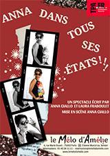 Venez découvrir Anna GIALLO ! Elle nous emmène dans les différents chapitres de sa vie de comédienne. Elle prend toute la lumière de la scène et la restitue dans une suite de tableaux touchants, drôles, intimistes, coups de gueule, dans une mise en scène soignée et astucieuse.