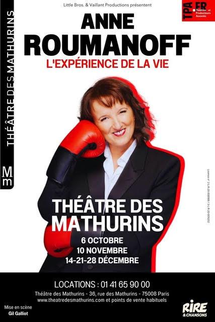 « Après plus de 35 ans de carrière, Anne Roumanoff se classe toujours parmi les personnalités préférées des Français. Toujours à l'affût de l’actualité, elle trouve toujours dans la société une matière vive pour écrire de nouveaux spectacles. » France Inter