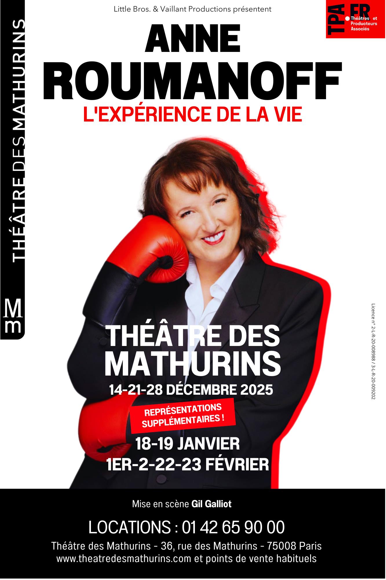 Spectacle brillant, amusant, détendant, pleins de nos ressentis. Mme Roumanoff a une belle énergie qui nous donne envie. Oui, affronter la vie d'un œil narquois même si la peine immense de la séparation définitive arrive. Veuillez lui transmettre mes sincères condoléances et je ne me trompe pas émoticone. Merci à vous d'avoir relayé son Spectacle.