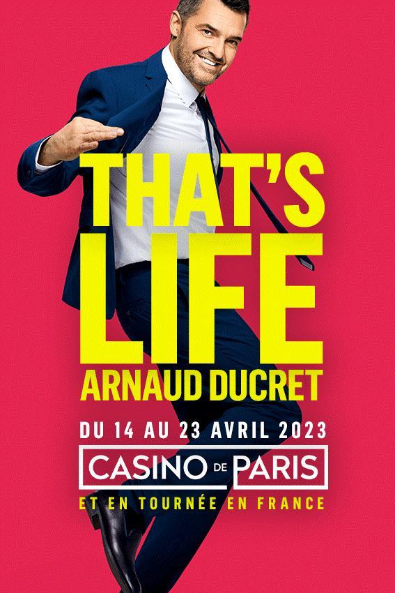Après avoir exploré avec succès le cinéma et la télévision, Arnaud Ducret fait son retour sur scène avec son nouveau one man show : That's life. Ce spectacle est une ode à la vie, à la famille, à l’amour et surtout à l’humour.