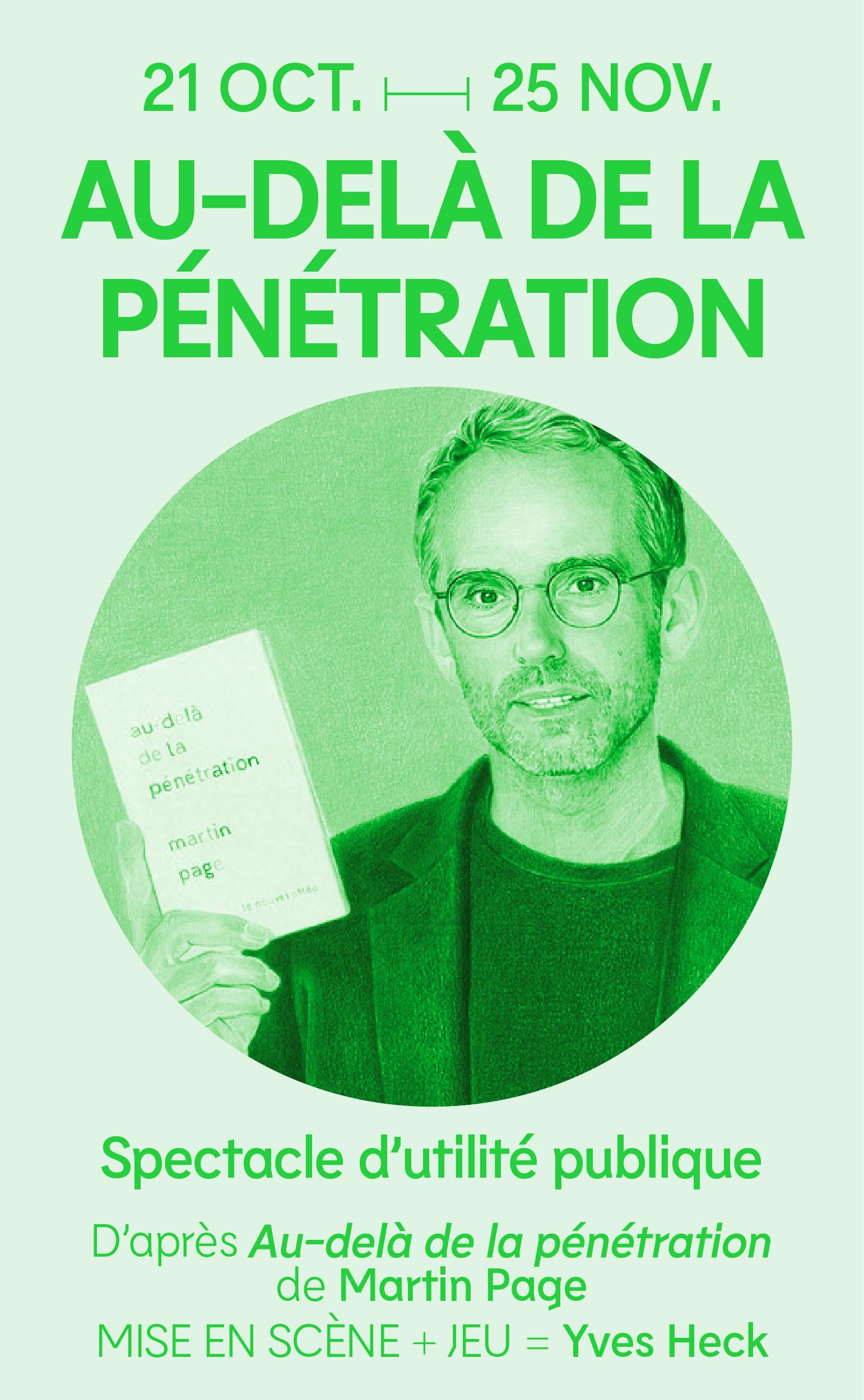Dans cette première adaptation au théâtre du best-seller féministe de Martin Page, un homme, troublé par la sexualité dont il a hérité, s’interroge (et nous avec) sur la pratique de la pénétration comme modèle dominant. Il a mené une enquête sur le sujet dont il partage la genèse et les fruits avec le public.