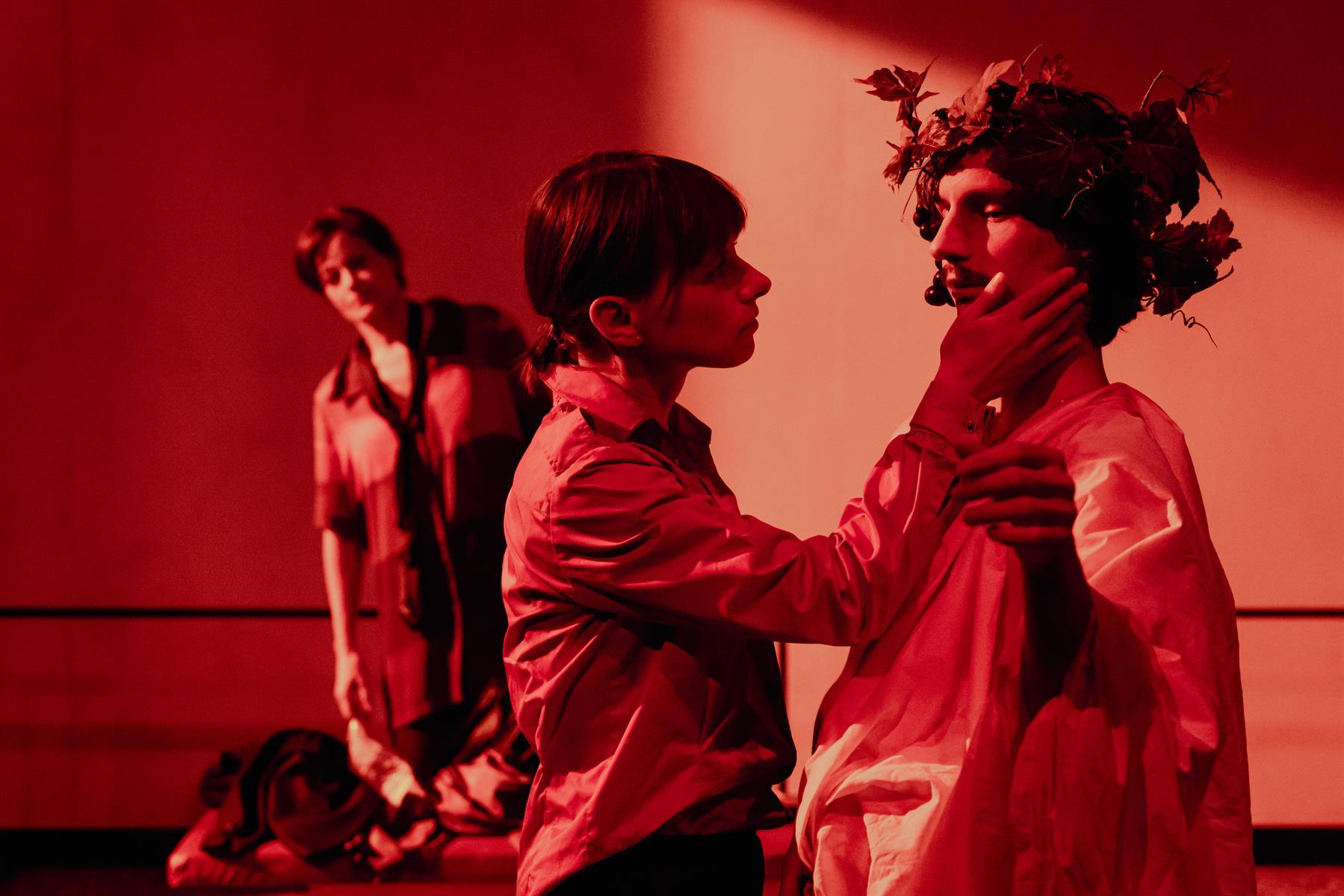La parole est singulière à chaque personnage, elle se meut pour des raisons différentes. J’ai la sensation que la poésie et la fiction sont des outils capables de donner un élan qui peut produire l’action. Ensemble, entre ceux qui jouent et ceux qui regardent, dans un présent qui peut tendre vers l’absolu, à l’aide des mots et des corps en présence, des événements naissent et des métamorphoses s’opèrent. La pièce opère la rencontre entre le minimalisme des échanges chez Roy Anderson et le lyrisme de la langue tragique, passant du distributeur à sandwichs de la salle de repos d’un musée vénitien à la beauté des tableaux du Caravage, de Lotto, de Bellini… Ici le trivial côtoie le sublime, la poésie jaillit dans l’assemblage mélodique des phrases les plus anodines, le sens se tisse au cœur de l’intime et de la grande histoire. Il est question d’amour et de peinture. De pulsions violentes et d’imagination. De chaos et de tendresse.
