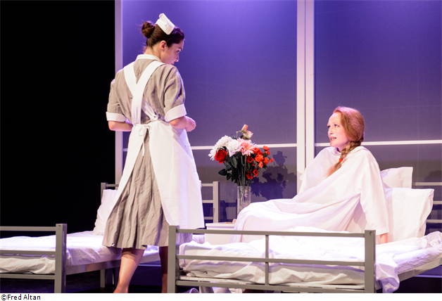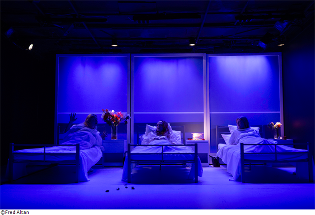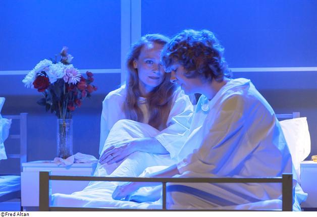 La mise en scène s’appuie sur un univers laiteux, proche du noir et blanc des films des années 50. Une seule tache de couleur, les fleurs qui leur arrivent de l’extérieur : une explosion pour Stina, la trop heureuse, Stina la solaire. Un bouquet monochrome pour Cecilia, un bouquet de bon goût. Un pauvre petit bouquet anonyme pour Hjördis, cadeau des collègues d’usine. Syster Britta, l’infirmière, veille sur elles trois, recueille leurs confidences et leurs cris de révolte, écoute en souriant leurs babillages de jeunes femmes redevenues soudain pensionnaires en dortoir, partage leurs fous rires ; la vie est là, à chaque instant. Malgré la cruauté incompréhensible de l’existence, chacune à sa façon trouvera les conditions de sa survie.