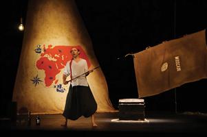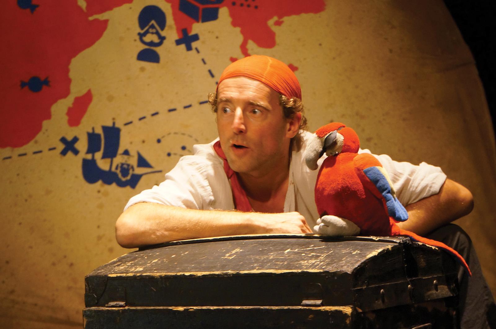 Dans un décor évocateur afin de faire appel le plus possible à l’imagination, Augustin, seul en scène, raconte avec une verve communicative sa chasse au trésor menée tambour battant. Pour parvenir à triompher de tous les dangers, il « enrôle » dans son équipage les jeunes spectateurs avides de sensations fortes.