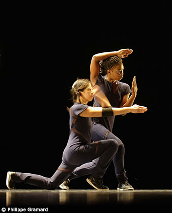 Quatre danseuses d’exception se livrent à un subtil jeu de stratégie entre danse frontale et figures libres. Un rituel effréné s’installe où la contrainte collective se mesure au besoin de conquête et de liberté de chacune. Les danseuses forment une « tribu »avec ses relations organiques et ses enjeux de pouvoirs. Chorégraphiée au millimètre, la danse devient transe au rythme pulsant ou débridé des percussions organiques de Sebastien Lété.