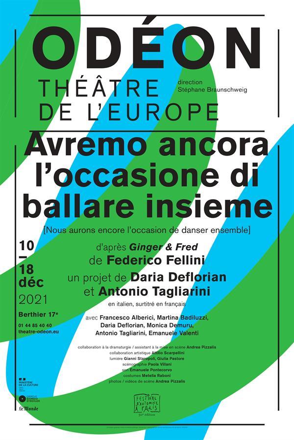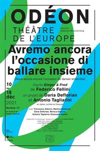 Daria Deflorian et Antonio Tagliarini s’en inspirent très librement pour leur troisième spectacle à l’Odéon. Ils concluent ainsi une « trilogie cinéma » en abordant le foisonnement fellinien après le minimalisme d’Antonioni. Mais surtout, cette fois-ci, ils ont placé la danse au cœur d’un projet qui réunit trois générations d’artistes. Aux côtés de Daria et Antonio avec leur « art désossé » et leur « vie mise à nu », deux performeurs « dynamiques, déchaînés » apporteront leur énergie de trentenaires, tandis que « deux animateurs boute-en-train, deux cabotins de 45 ans », tiendront les rôles de Ginger et Fred jouant avec le public. Ensemble, ces trois couples s’interrogeront sur le destin de l’art et des artistes, tout en reposant à leur manière la question pressante de Fred à Ginger lors d’une coupure de courant en plein spectacle : pourquoi ne pas s’enfuir, pourquoi ne pas quitter le show ?