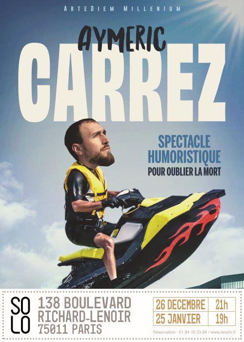 Aymeric Carrez, c'est un spectacle qui casse les codes du stand-up, caustique à souhait, parfaitement inattendu, décalé et absurde. Amateurs d'humour noir, vous serez comblés !