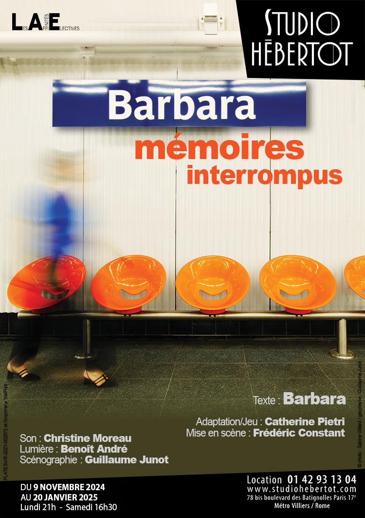 Étrangement, il est inutile d’être amoureux de Barbara pour aller voir cette pièce superbement interprétée par Catherine Pietri. C’est une histoire, c’est un conte, c’est un voyage dans le temps passé et la nostalgie de l’enfance où tout est encore possible. Avec beaucoup de présence et d’intensité, l’actrice interprète le chemin de celle qui est devenue Barbara et on se sent bien petite face à cette force qui donne envie de se dépasser. Un vrai beau moment de théâtre !