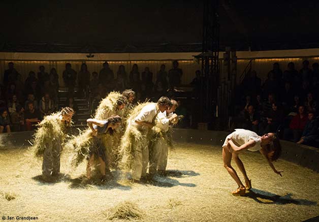 Des acrobates, des danseurs, un comédien, des chevaux et des oiseaux : voici les protagonistes de cette nouvelle création de Baro d’Evel Cirk Cie, compagnie franco-catalane qui depuis dix ans n’a de cesse de nous charmer avec des spectacles pleins de délicatesse et d’humour, à la lisière du cirque et des arts plastiques. Sous un magnifique chapiteau, spécialement conçu pour ce projet, deux pistes qui s’imbriquent accueillent les artistes et les spectateurs dans une même « centrifugeuse ».