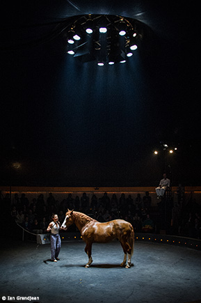 Comme une balade de Paolo Conte, les vivants se frottent à la vie, se croisent étonnés, s'entrecroisent curieux, se loupent à reculons. C'est un hymne aux possibles, tout peut arriver, rien n'est écrit, et même ce qui semble absurde prend tout son sens aux lueurs de l'amour. Le sens est au coeur, sens dessus dessous, le sens de la vie qui nous interpelle en dedans et ça fait du bien pour résister au monde zombie qui veut nous happer dans sa valse consumériste et numérique. C'est un très beau spectacle d'une grande poésie et, s'il est bien écrit, tout reste ouvert à l'improvisation dans les interactions entre êtres humains, chevaux et oiseaux. La troupe est talentueuse, les corps sont toujours au diapason tendues par l'effort, le roulis de la terre, les envolées acrobates. Le jeu des voix danse à chaque scène, la dresseuse acrobate chante à faire faillir, atteint la corde rauque hypersensible, les deux frères bouclés barbus tout droit sortis d'un film des frères Taviani jumellent leurs corps sacrifient au plaisir d'être juste là, ensemble, avec nous. La petite fille de la balle, blanche, surprend par sa densité, elle fait plus qu'accompagner les grands, elle est partie entière de la troupe et sait tropuver sa place. Mais surtout, l'Italien, cousin du Roberto Benigni de la Vie est Belle, perce l'âme en nous étourdissant de mots derrière lesquels se cachent toutes nos fêlures ; son rythme haletant, ponctué de trous et d'appels d'air si ahurissants pour notre vie réglée comme du papier musique où rien ne doit sursoir et tout doit être immédiat, fait du bien. Allez voir ce spectacle, faites comme moi qui vient de Tahiti, ne lésinez pas sur les stations de métro, pour petits et grands la poésie chevaleresque va vous redonner de quoi vous gratter la tête. D'ailleurs, c'est bien d'être un peu fêlé, ça laisse un peu passer la lumière...