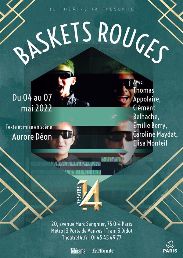 Baskets Rouges, c’est l’histoire d’une jeune fille contrainte de quitter un monde dévasté. C’est l’histoire d’une jeune fille qui surgit dans un royaume qui a banni les rêves. C’est surtout l’histoire d’une héroïne qui s’ignore et qui dégote une paire de baskets rouges. Des baskets qui font bouger. Tout le temps. Ça devient alors l’histoire et le destin de tout le monde...
