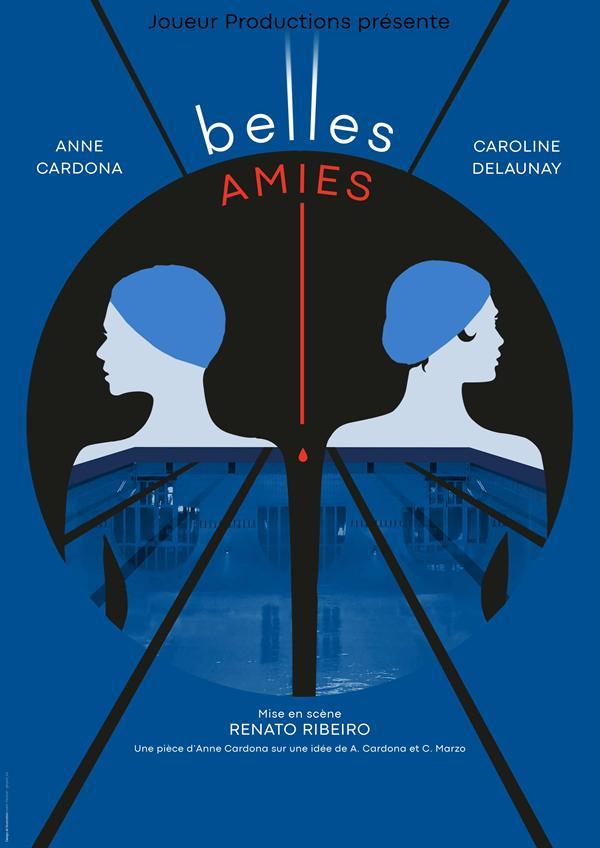 Anne Cardona a écrit une pièce étonnante, maîtrisée, audacieuse : Belles amies. Des dialogues forts, intelligents, ciselés façon dentelle ou balancés façon poignard, toujours élégants. Elle joue aussi et avec Caroline Delaunay pour “ partner in crime “ , elles forment un duo implacable, éclatant. Avec ces deux magnifiques comédiennes, féroces et tendres, rayonnantes et fiévreuses, névrosées peut-être, on glisse, au rythme d’un thriller haletant, dans le secret bien gardé de leur longue amitié. À la piscine on parle de Klein, Soulages, Manet, et de Mathieu. La mise en scène est tonique, réveillée, elle vous prend par surprise, vous électro-choque et c’est ça qui est bon. Quel merveilleux moment de théâtre. Merci et bravo à tous.