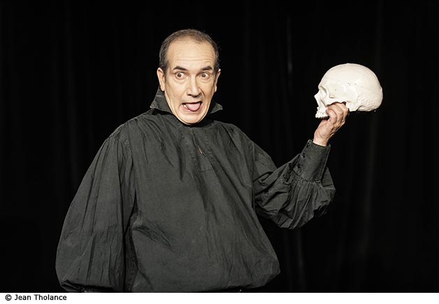 Interprétant à lui seul tous les personnages, respectant le texte de William Shakespeare en y ajoutant de ci de la, quelques sorties de route personnelles, Bernard Azimuth nous offre ici un Hamlet virtuose et jubilatoire. Un spectacle de la maturité pour un artiste humoriste hors normes.