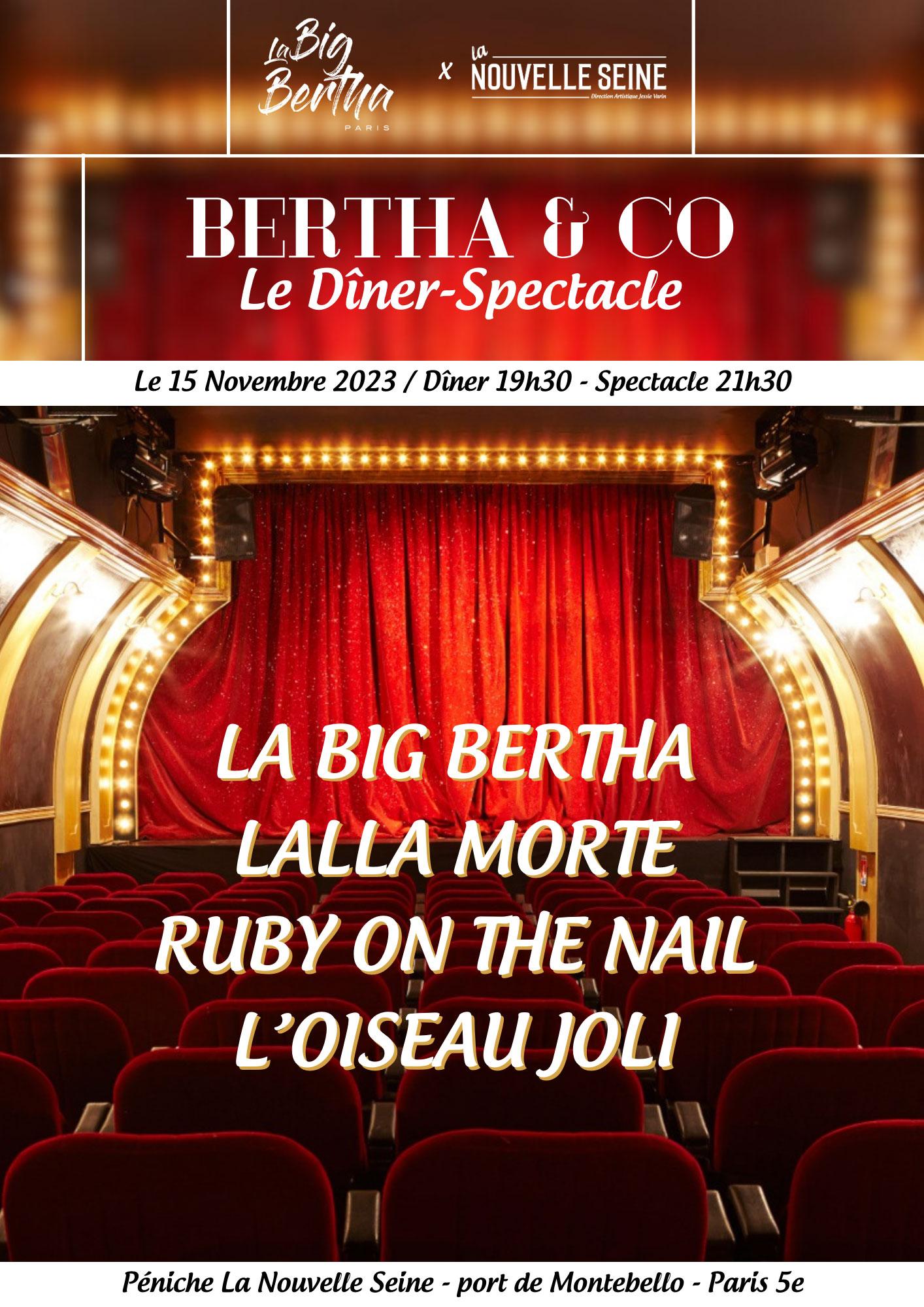 La Big Bertha, queen du monde drag et burlesque et surtout amoureuse de la cuisine, vous invite à un dîner-spectacle suivi d'un show drag avec des invitées exceptionnelles. Vous allez adorer !