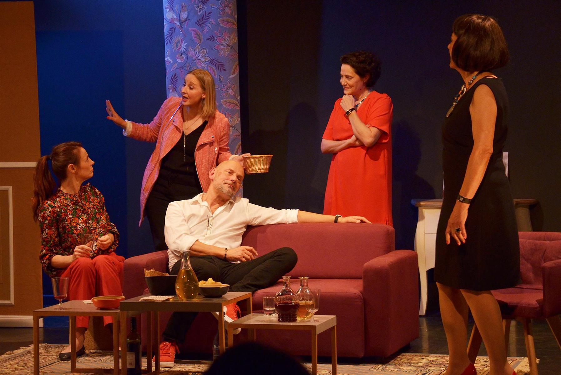 d'ordinaire pas mon répertoire de prédilection mais j'aime le théâtre à la Folie qu'importe le genre car j'apprécie son équipe dirigeante,ses choix de programmation et le charme indéfinissable de ce lieu !Concernant la pièce, les filles sont au top(Alex la psy-alcoologue en blanc et rouge, La Mathide, Miss Loboutin et la femme à cromagnon et le mari de "ses" dames.Légèreté, langage cru parfois mais le tout est bien ficelé, nourri de rebondissements,de sujets qui interpellent...Au final pas bête du tout et d'une drôlerie qui vous prend à la Racine et vous évitent de bailler ôh Corneille!