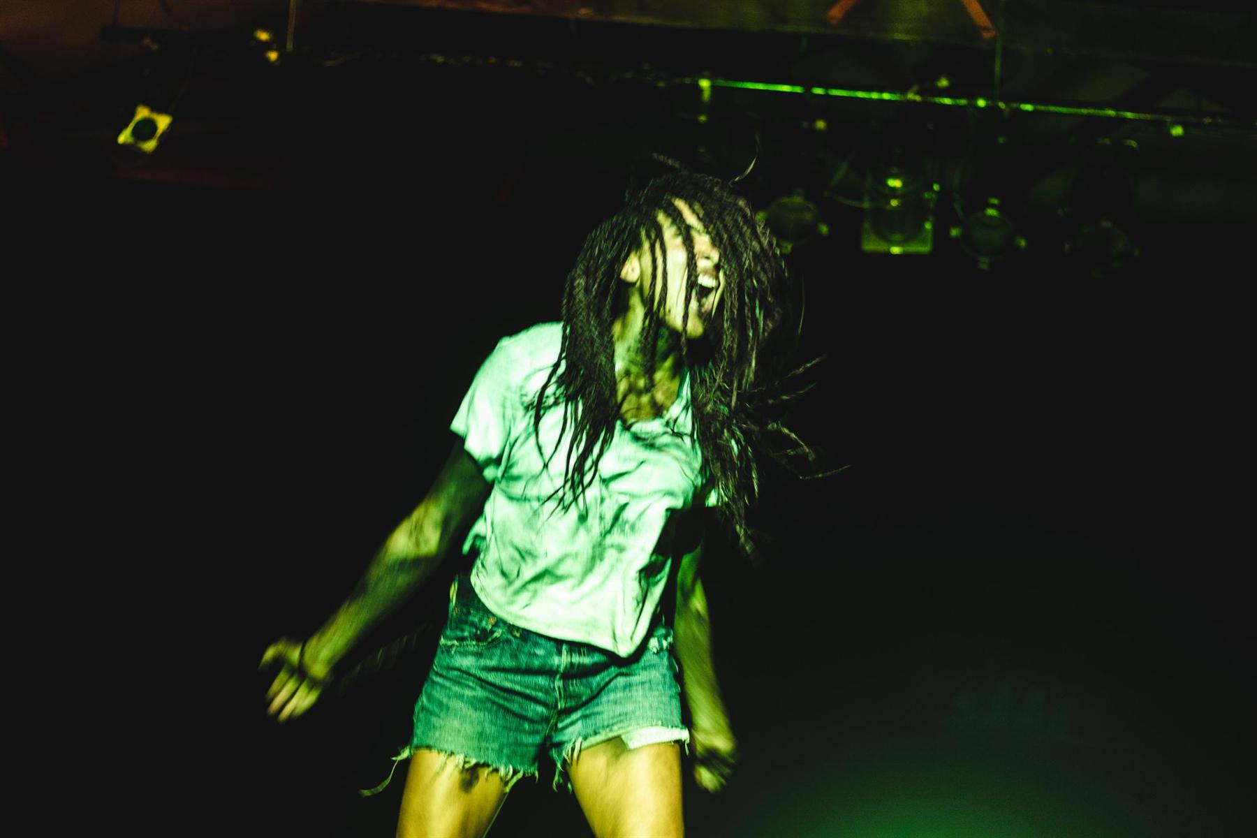 Une expérience inouïe devant la transe d'une créature mi-séductrice mi-effrayante. Le public reçoit en écho les mouvements de Betty Tchomanga comme autant d'univers intérieurs qui se réveillent puis s'ensommeillent.