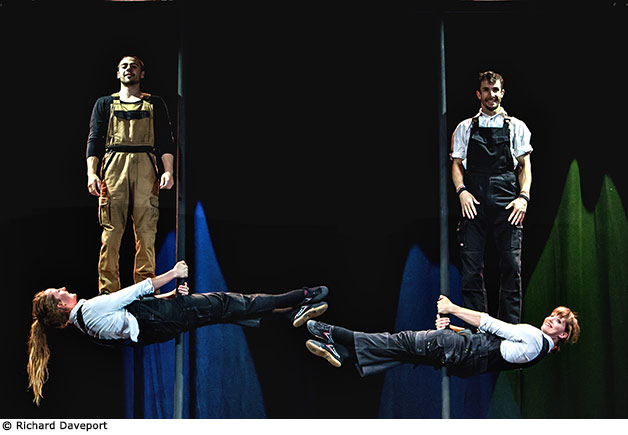 Après Opus ; S ou Wunderkammer, spectacles phares présentés dans une trentaine de pays sur tous les continents, la compagnie australienne Circa plante son espace de jeu dans la grande salle du Rond-Point, devenue zoo à créatures libres. Avec un élastique, un Rubik’s cube et des boîtes de conserve, sept interprètes cassent les codes du cirque traditionnel. Ils réinventent tout autant les lois du nouveau cirque dans un écrin en rouge et noir, rêve de gosse où le corps devient un jouet élastique de magie. Ils s’adonnent à des jeux sadomasos à paillettes, à plumes et à plusieurs grilles de lecture. Corps à corps, mises à l’épreuve, et autres drôles de combats dont les enfants aussi raffolent.