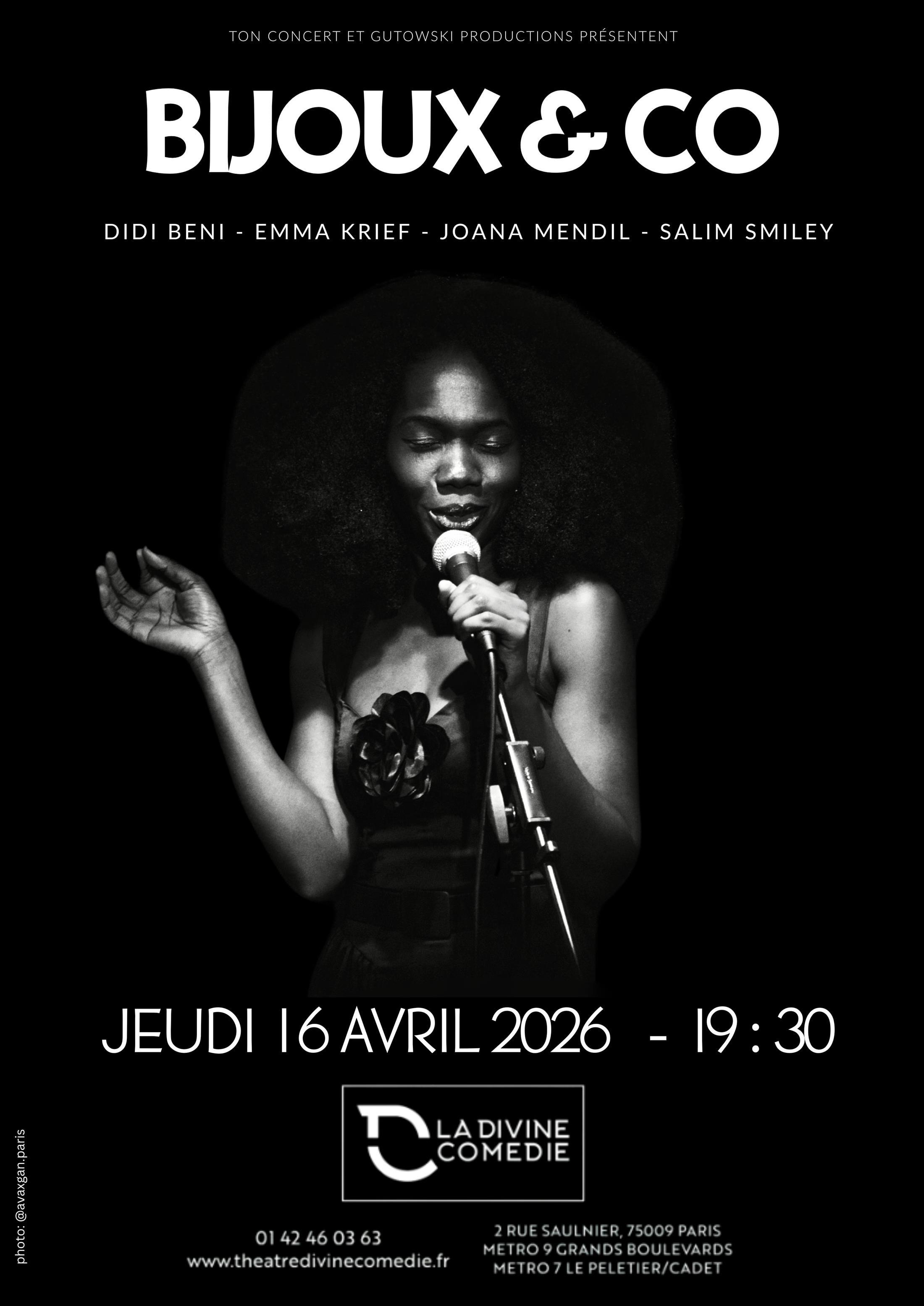 Elle invite des artistes pour un moment placé sous le signe du partage. Entre chant et humour, ils proposent un spectacle hybride, rythmé et plein d’énergie. Bijoux sera également sur scène pour chanter et porter le spectacle. L’occasion de découvrir des artistes émergents ou d’en retrouver d’autres déjà connus, le temps d’une soirée conviviale.
