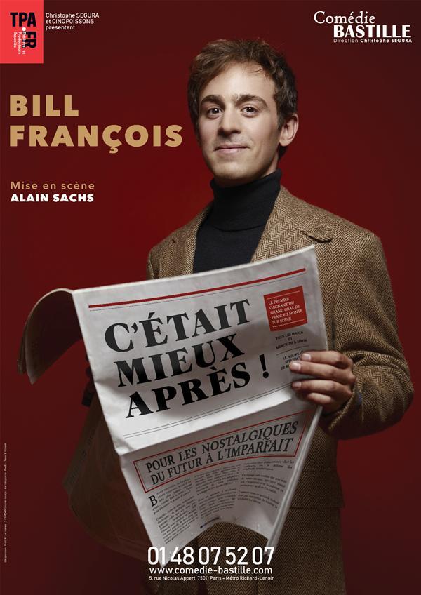 Artiste atypique, Bill François est humoriste, écrivain, orateur, poète, normalien et même… docteur en Physique. C’était mieux après explore les non-sens de notre époque, son passé et ses avenirs et jette un double regard de scientifique et d’humoriste sur toute notre humanité si souvent déshumanisée. Bill y conjugue absurde et réalité, alexandrins et actualités, dans un tourbillon désopilant.