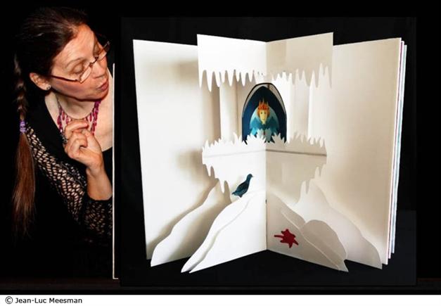 La conteuse Evelyne Nouaille vous propose sa façon unique de découvrir la version intégrale de ce conte de Grimm : un livre géant qui s’ouvre sur l’histoire, découvrant des scènes qui s’animent, se plient et se déplient, peuplées de marionnettes de papier qui évoluent dans des décors en pop-up. Chaque page tournée renouvelle l’émerveillement d’une poésie à la fois lumineuse et captivante : la poésie des mots de la conteuse unie à celle des images qui restitue à merveille le merveilleux des contes.