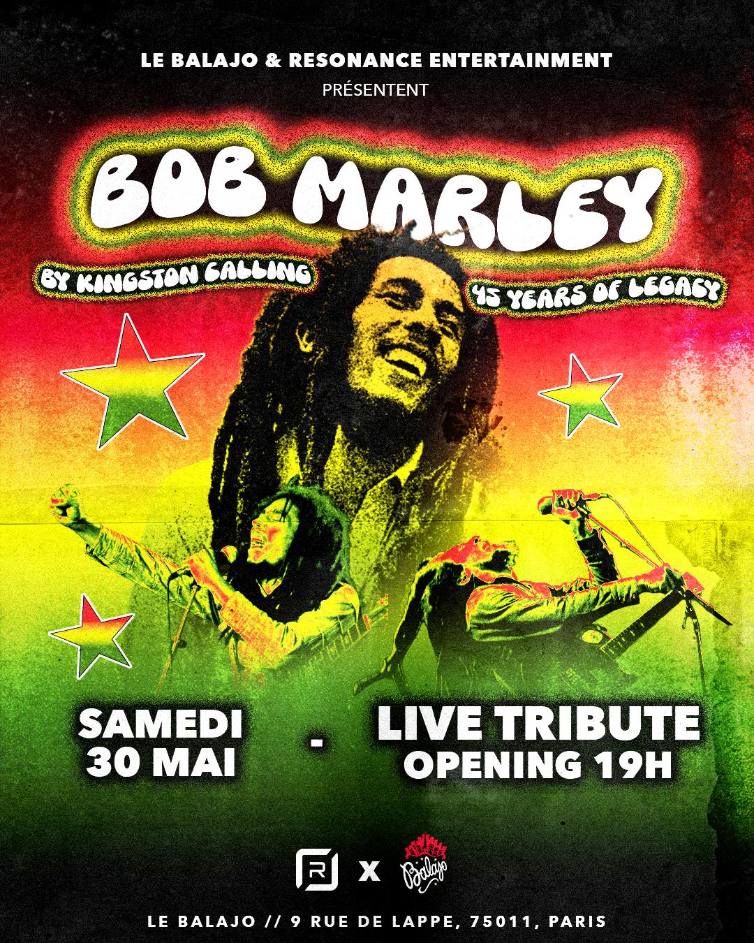 Sur scène, le tribute est interprété par Kingston Calling, qui fait revivre les classiques intemporels ayant marqué des générations. Un live tribute vibrant porté par des rythmes reggae iconiques, des mélodies solaires et cette énergie unique qui a fait de Bob Marley une véritable légende.