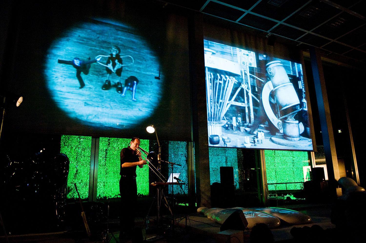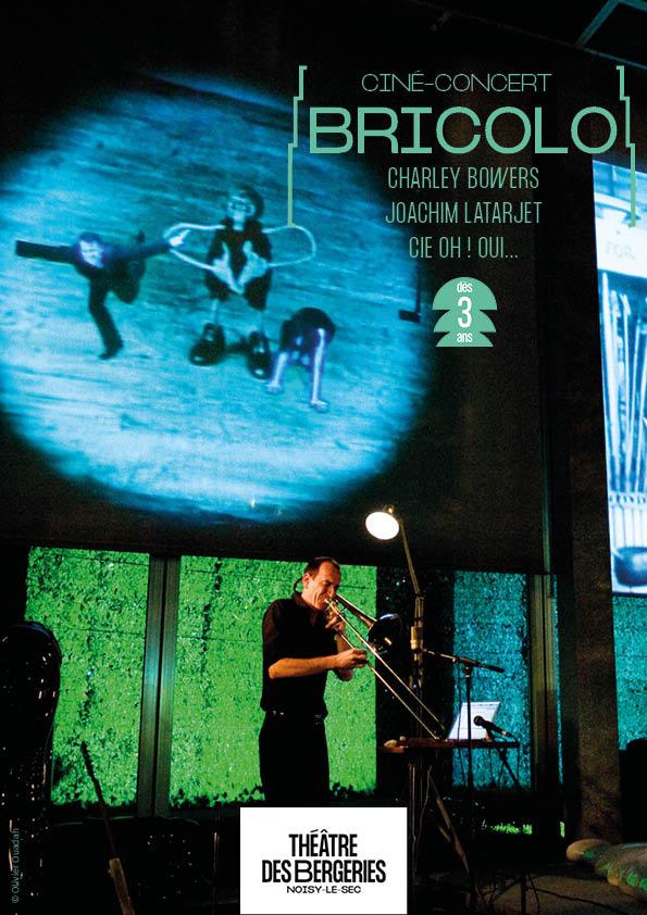 Bricolo ressuscite trois de ses courts-métrages muets. Trois pépites accompagnées par Joachim Latarjet au trombone, à la guitare, au yukulélé, au tuba… Alexandra Fleischer, comédienne, intervient inopinément pour répondre aux facéties du héros : Bricolo ! Avec lui, les voitures naissent dans des œufs, les chats poussent dans les arbres, la banane est antidérapante et pour apprendre le Charleston, il suffit de mettre les bonnes chaussures… !