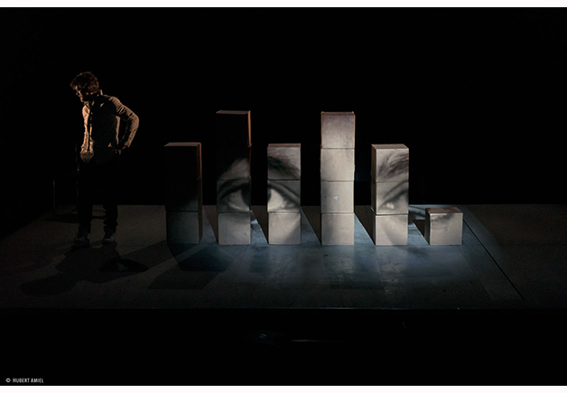 Juché sur un tapis roulant effréné, l’homme-acrobate a bien du mal à trouver son équilibre. Entouré de cartons qu’il déplace, trie et superpose, il semble rechercher sa place dans un univers froid et instable. En fond sonore, des récits témoignages et des textes poétiques égrenés par une voix off entrent en résonance avec ce corps malmené par un monde du travail insensible et aliénant.