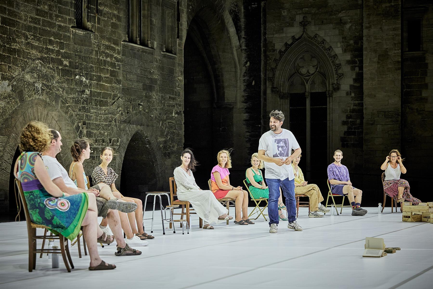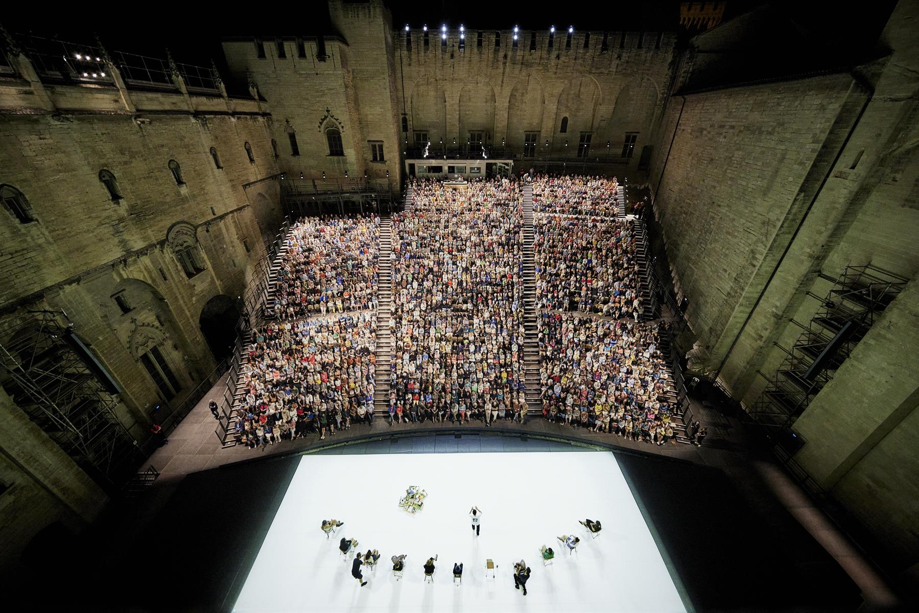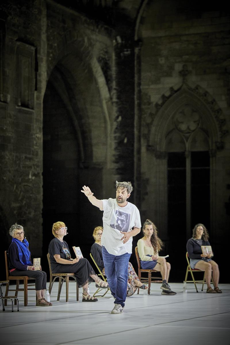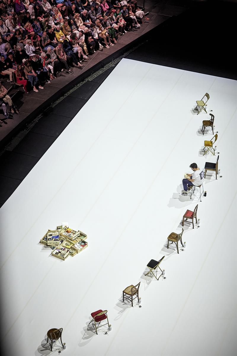 En conviant chaque soir sur le plateau dix spectateurs pour accomplir ce geste, Tiago Rodrigues ne se contente pas de brouiller les frontières entre le théâtre, la fiction et la réalité. Il invite des hommes et des femmes, le « peloton sonnet 30 de Shakespeare », à éprouver, le temps de la représentation, une expérience singulière : celle de retenir un texte et de le dire sur scène. Un acte de résistance et de lutte contre le temps, l’oubli, le vieillissement, l’absence ou la disparition. Un geste bouleversant, aussi intime que politique.