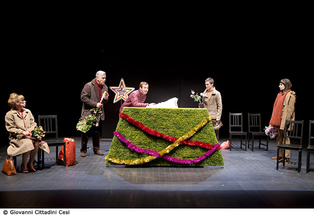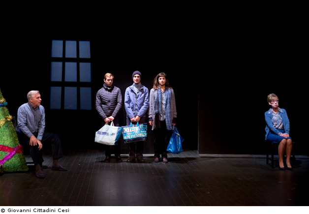 Les guirlandes débloquent, les plombs sautent, la grand-mère disparaît. On attend Noël, on espère la paix sur la Terre et l’accalmie en famille. Rien ne vient. Le père installe les boules du sapin et refuse la faveur sexuelle que la mère lui offre. Ça commence mal, ça ne finira pas mieux. Comme la vie : comédie loufoque. Deux fils débarquent au mauvais moment avec la pièce rapportée. Trop en chair, la belle-fille. Tout le monde se retrouvera pour la nouvelle année. On s’entretuera encore mieux. Au final, on aura traversé l’aventure épique et dansée d’un foyer comme les autres, aux liens disloqués, qui cherche réparation. Le bonheur d’être ensemble et en vie passe par là, c’est malheureux mais c’est comme ça. C’est aussi très marrant parfois.