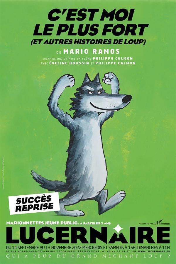 Dans ce spectacle, je veux plonger les spectateurs dans l’univers de Mario Ramos. Il y a en fond de scène une grande toile représentant la forêt. Devant, des kakémonos et des podiums mobiles évoluent et remodèlent sans cesse l’espace. Il en sort des marionnettes manipulées à vue. J’ai voulu associer aux personnages des contes traditionnels, des comptines traditionnelles. Des arrangements les plus simples, aux harmonisations les plus « acrobatiques », c’est à la contrebasse d’Alexandre Perrot que j’ai confié le soin de créer un univers sonore et d’accompagner les chansons. Je veux jouer avec l’image du loup. Tour à tour, impressionnant, monstrueux, ridicule ou peureux, il nous montre plusieurs de ses facettes. Mais au fait, qui est-il ce loup qui veut briller en toutes circonstances ? Qui veut-il être ? Qu’attend-il des autres ?